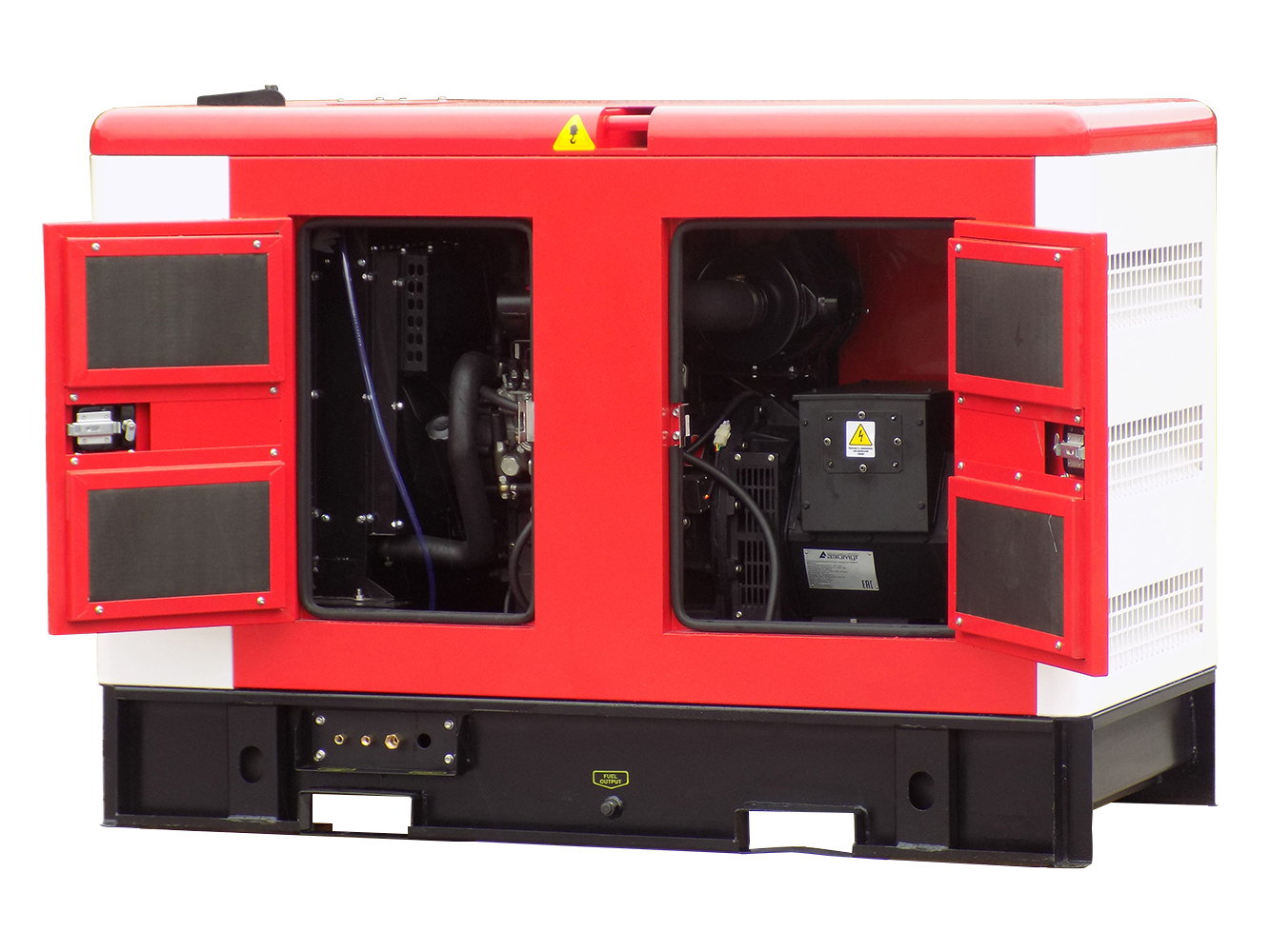 Данная модель представляет собой промышленный дизельный генератор в кожухе, предназначенный для постоянной эксплуатации.